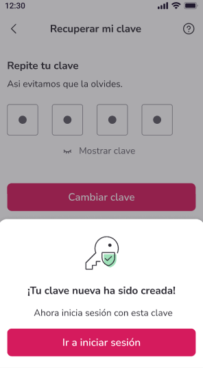 7. ¡Y listo! Podrás entrar a tu app con tu nueva clave