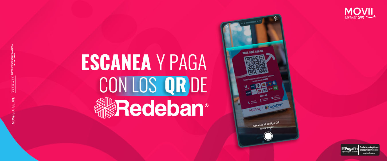 MOVii es parte del mundo QR y está listo para ayudarte a hacer tus pagos en comercios, que tengan el logo de Redeban, con menos pasos y sin contratiempos. Dale la bienvenida para que tus MOViimientos sean como siempre quisiste.